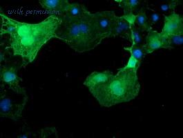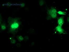 Anti-C17orf37 mouse monoclonal antibody immunofluorescent staining of COS7 cells transiently transfected by pCMV6-ENTRY C17orf37.