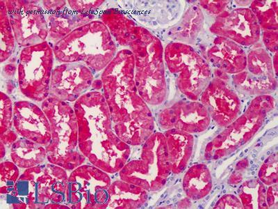 Anti-RAE1 antibody IHC of human kidney. Immunohistochemistry of formalin-fixed, paraffin-embedded tissue after heat-induced antigen retrieval. Antibody concentration 5 ug/ml. This image was taken for the unconjugated form of this product. Other forms have not been tested.