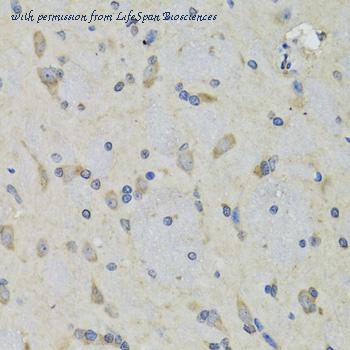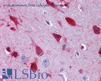 Anti-RAE1 antibody IHC of human brain, cortex. Immunohistochemistry of formalin-fixed, paraffin-embedded tissue after heat-induced antigen retrieval. Antibody concentration 3.75 ug/ml.