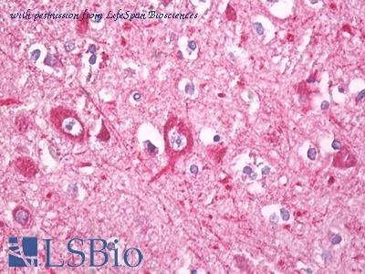 Anti-EIF3B antibody IHC of human brain, cortex neurons. Immunohistochemistry of formalin-fixed, paraffin-embedded tissue after heat-induced antigen retrieval. Antibody dilution 10 ug/ml.
