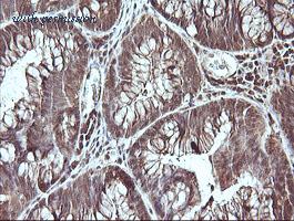 IHC of paraffin-embedded Adenocarcinoma of Human colon tissue using anti-${SYMBOL} mouse monoclonal antibody.