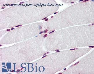 Anti-BAZ1B / WSTF antibody IHC of human skeletal muscle. Immunohistochemistry of formalin-fixed, paraffin-embedded tissue after heat-induced antigen retrieval. Antibody concentration 3 ug/ml.