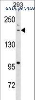 BAZ1B Antibody western blot of 293 cell line lysates (35 ug/lane). The BAZ1B antibody detected the BAZ1B protein (arrow).