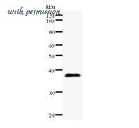 Western blot analysis of immunized recombinant protein, using anti-PYGO2 monoclonal antibody.