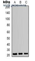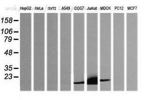 Western blot analysis of CD3e expression in Jurkat (A); HeLa (B); NIH3T3 (C) whole cell lysates.