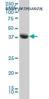 STK17B monoclonal antibody (M01), clone 2C3 Western blot of STK17B expression in Jurkat.