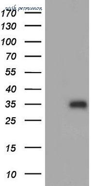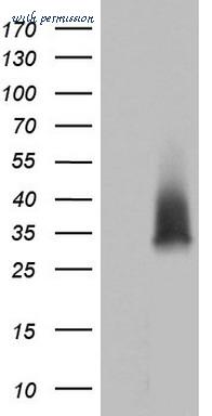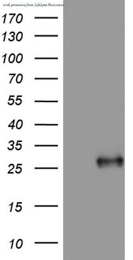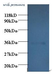 Western Blot; Lane1: Bovine Serum; Lane2: Bovine Heart.