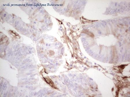 IHC of paraffin-embedded Adenocarcinoma of Human colon tissue using anti-ADIPOQ mouse monoclonal antibody. (Heat-induced epitope retrieval by 1 mM EDTA in 10mM Tris, pH8.5, 120°C for 3min).