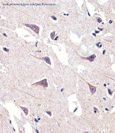 Immunohistochemical of paraffin-embedded H.brain section using FADS2 Antibody. Antibody was diluted at 1:25 dilution. A peroxidase-conjugated goat anti-rabbit IgG at 1:400 dilution was used as the secondary antibody, followed by DAB staining.