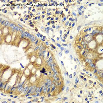 Immunohistochemistry of paraffin-embedded human colon tissue.