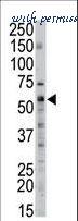 The anti-SPTLC2 antibody is used in Western blot to detect SPTLC2 in mouse liver tissue lysate.