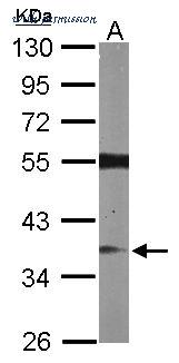 Sample (50 ug of whole cell lysate). A: Mouse brain. 10% SDS PAGE. RASSF2 antibody diluted at 1:1000.