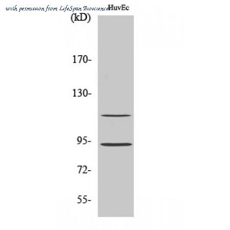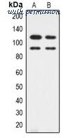 Western blot analysis of CDK11B expression in HepG2 (A); HeLa (B) whole cell lysates.