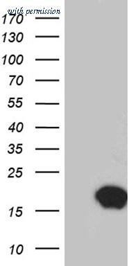 HEK293T cells were transfected with the pCMV6-ENTRY control (Cat# PS100001, Left lane) or pCMV6-ENTRY IFITM2 (Cat# RC202067, Right lane) cDNA for 48 hrs and lysed. Equivalent amounts of cell lysates (5 ug per lane) were separated by SDS-PAGE and immunoblotted with anti-IFITM2 (Cat# TA811625)(1:2000). Positive lysates [LY401937] (100ug) and [LC401937] (20ug) can be purchased separately from OriGene.