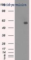 HEK293T cells were transfected with the pCMV6-ENTRY control (Cat# PS100001, Left lane) or pCMV6-ENTRY NRBP1 (Cat# RC200107, Right lane) cDNA for 48 hrs and lysed. Equivalent amounts of cell lysates (5 ug per lane) were separated by SDS-PAGE and immunoblotted with anti-NRBP1(Cat# TA500437). Positive lysates [LY415614] (100ug) and [LC415614] (20ug) can be purchased separately from OriGene.