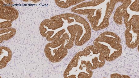 Immunohistochemistry staining of prostate (paraffin-embedded sections) with anti-human Prostate-specific antigen (A67-B/E3).