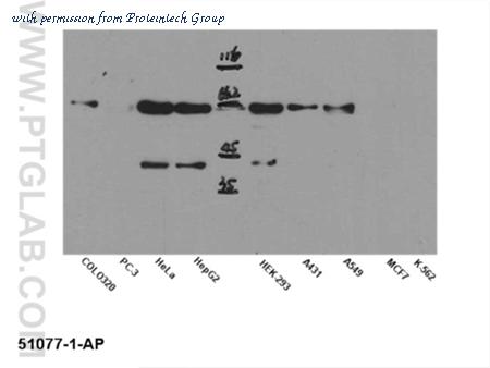 The AKT1 antibody from Proteintech is a rabbit polyclonal antibody to a peptide of human AKT1. This antibody recognizes human, mouse antigen. The AKT1 antibody has been validated for the following applications: IHC, WB, ELISA analysis.
