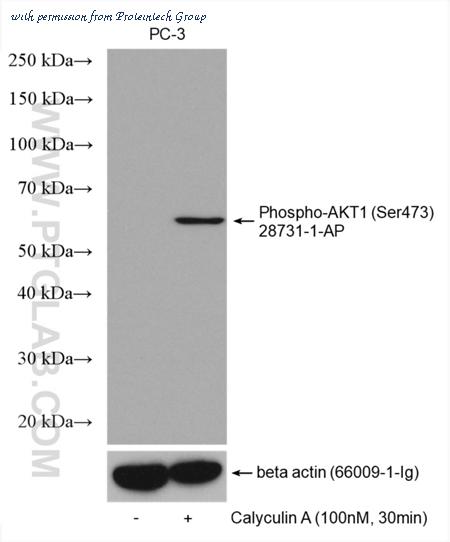 The Phospho-AKT1 (Ser473) antibody from Proteintech is a rabbit polyclonal antibody to a peptide of human Phospho-AKT1 (Ser473). This antibody recognizes human, mouse, rat antigen. The Phospho-AKT1 (Ser473) antibody has been validated for the following applications: WB, ELISA analysis.