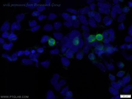 The MYC tag antibody from Proteintech is a mouse monoclonal antibody to a peptide of MYC tag. This antibody recognizes recombinant protein antigen. The MYC tag antibody has been validated for the following applications: IF, ELISA analysis. This antibody is coralite488-conjugated.