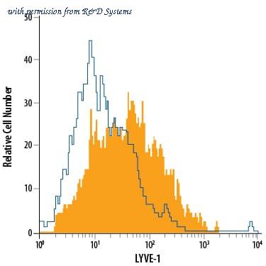 Detection of LYVE-1 antibody in bEnd.3 Mouse Cell Line antibody by Flow Cytometry.