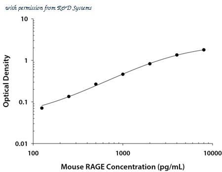 Human RAGE ELISA Cell Culture Supernate Standard Curve