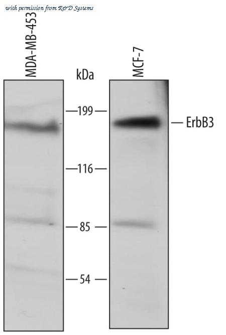 Detection of Human ErbB3/Her3 antibody by Western Blot.