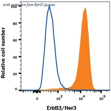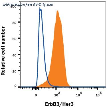 Detection of ErbB3/Her3 antibody in MCF-7 Human Cell Line antibody by Flow Cytometry.