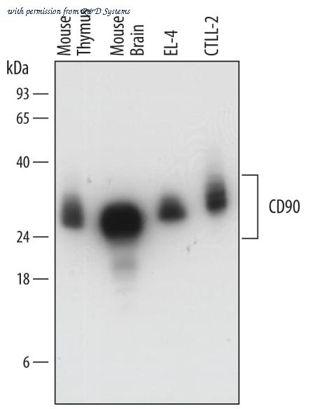 Detection of Mouse CD90/Thy1 antibody by Western Blot.
