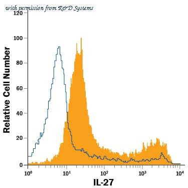 Detection of IL-27 antibody in Human PBMCs antibody by Flow Cytometry.