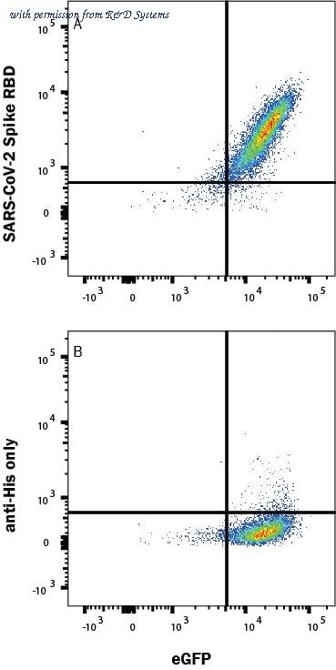 Detection of His Tag antibody in HEK293 Human Cell Line Transfected with His-tagged Protein antibody by Flow Cytometry.