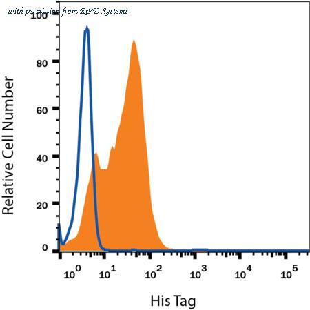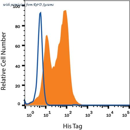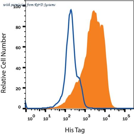 Detection of His tag antibody in HEK293 Human Cell Line Transfected with His-tagged Protein antibody by Flow Cytometry.