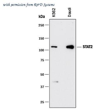 Detection of Human Phospho-STAT2 (Y689) antibody by Western Blot.