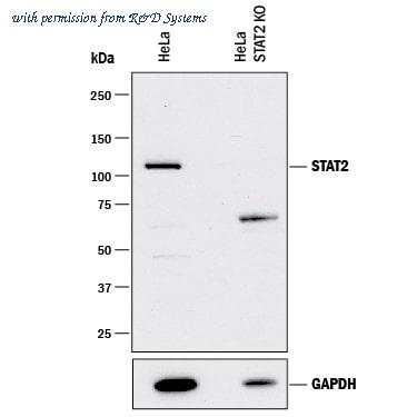 Western Blot Shows Human STAT2 Specificity by Using Knockout Cell Line.