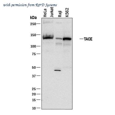Detection of Human TACE/ADAM17 antibody by Western Blot.
