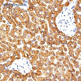 TfR2 antibody in Human Liver by Immunohistochemistry (IHC-P).