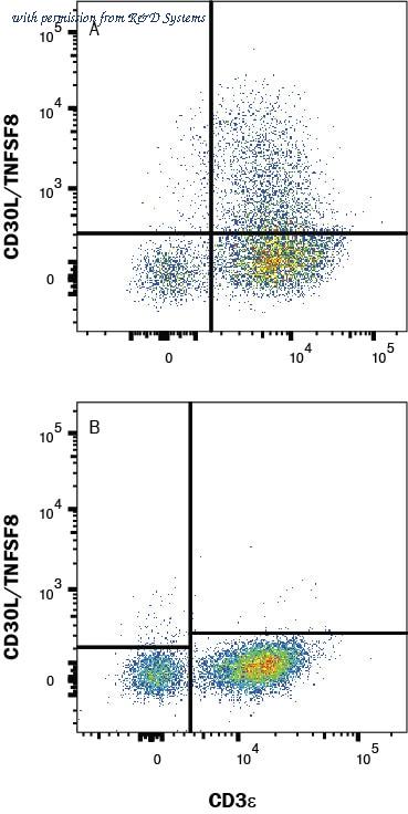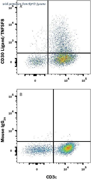 Detection of CD30 Ligand/TNFSF8 antibody in Human PBMCs antibody by Flow Cytometry.