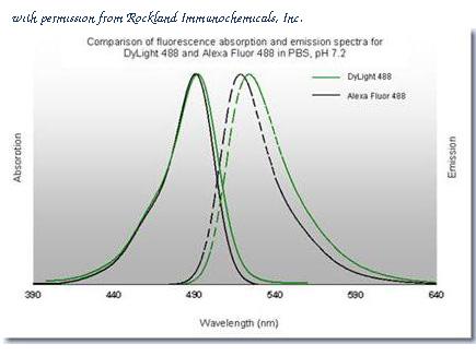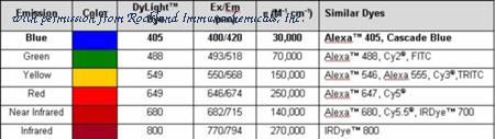 DyLight™ dyes can be used for multi-color immunofluorescence microscopy with uniform fluorescence intensity throughout the image. DyLight™ dyes are exceptionally bright and photostable and are optimized for microscopy and microarray detection methods. This image shows anti-histone detection using a DyLight™ 488 conjugate (green). Anti-tubulin was detected using a DyLight™ 549 conjugate (red). Nuclei were counter-stained using DAPI (blue). The image was captured using an Axio Imager.Z1 (Zeiss Micro Imaging Inc).