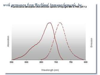 DyLight™ dyes can be used for multi-color immunofluorescence microscopy with uniform fluorescence intensity throughout the image. DyLight™ dyes are exceptionally bright and photostable and are optimized for microscopy and microarray detection methods. This image shows anti-histone detection using a DyLight™ 488 conjugate (green). Anti-tubulin was detected using a DyLight™ 549 conjugate (red). Nuclei were counter-stained using DAPI (blue). The image was captured using an Axio Imager.Z1 (Zeiss Micro Imaging Inc).