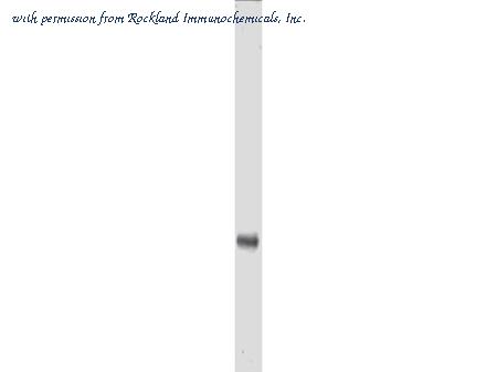 Anti-Myc epitope tag polyclonal antibody detects Myc-tagged recombinant proteins by western blot. Polyclonal rabbit-anti-Myc epitope tag at 0.5-1.0 µg/ml was used to detect 1.0 ug of recombinant protein containing the Myc epitope tag. A 4-20% gradient gel was used to separate the protein by SDS-PAGE. The protein was transferred to nitrocellulose using standard methods. After blocking the membrane was probed with the primary antibody for 1 h at room temperature followed by washes and reaction with a 1:2500 dilution of IRDye™800 conjugated Gt-a-Rabbit IgG [H&L] (code 611-132-122) for 30 min at room temperature. LICOR's Odyssey® Infrared Imaging System was used to scan and process the image. Other detection systems will yield similar results.