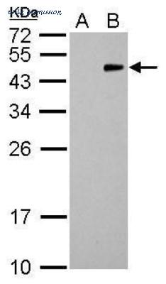 Western Blot: RFP Antibody (1610) [NBP2-43713] - Analysis of A. 30ug 293T whole cell lysate/extract B. 30 ug whole cell lysate/extract of RFP-transfected 293T cells 12 % SDS-PAGE RFP antibody [1610] dilution: 1:1000